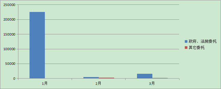 1月和3月政府、法院委托成交額仍然是主要來源,2月份其他社會委托出現(xiàn)增長。